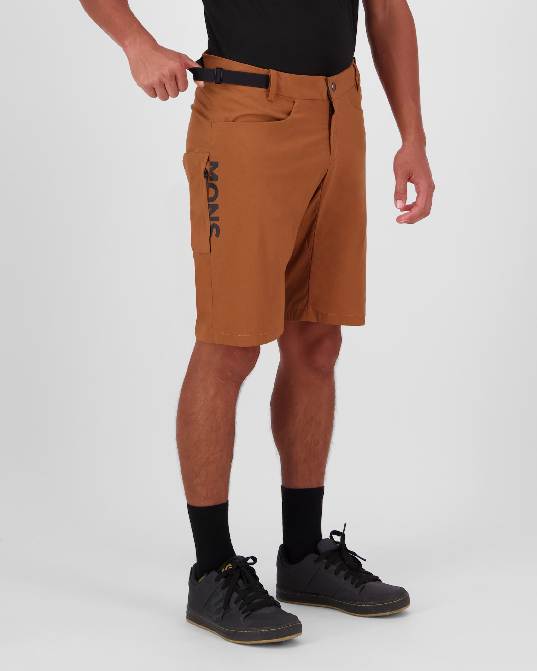 - On-bike fit - fully articulated for movement, featuring room for low-profile knee pads, elasticated waistband and slide lock button